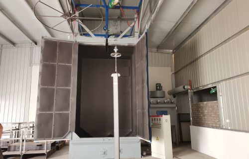 【現(xiàn)場安裝圖集】:簡介:吊鉤式拋丸機分為單吊鉤和雙吊鉤,拋丸機由吊鉤裝載工件交替進入拋丸清理室內(nèi)。利用拋...